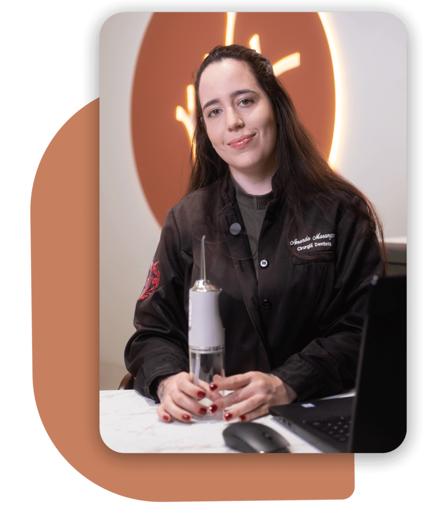 Nascida em Cuiabá, Amanda sempre sonhou em ser cantora, mas a paixão pela saúde e pelos negócios a levou a escolher a Odontologia em 2016. Surpreendeu-se ao se apaixonar pelo atendimento próximo aos pacientes.